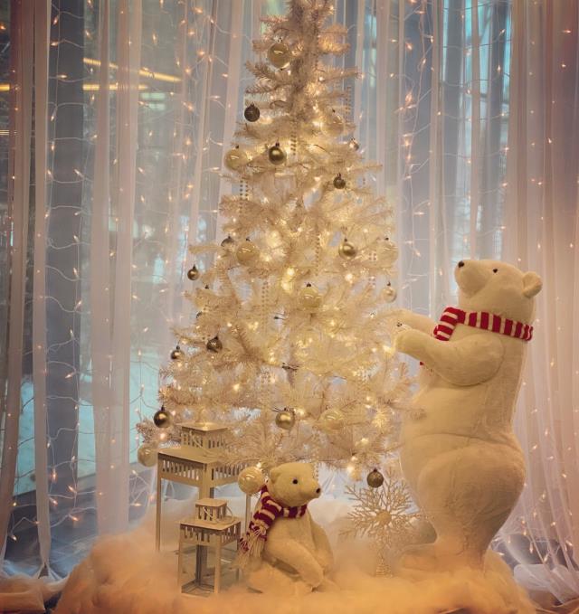 Bear, Sitting Glittered White 15"